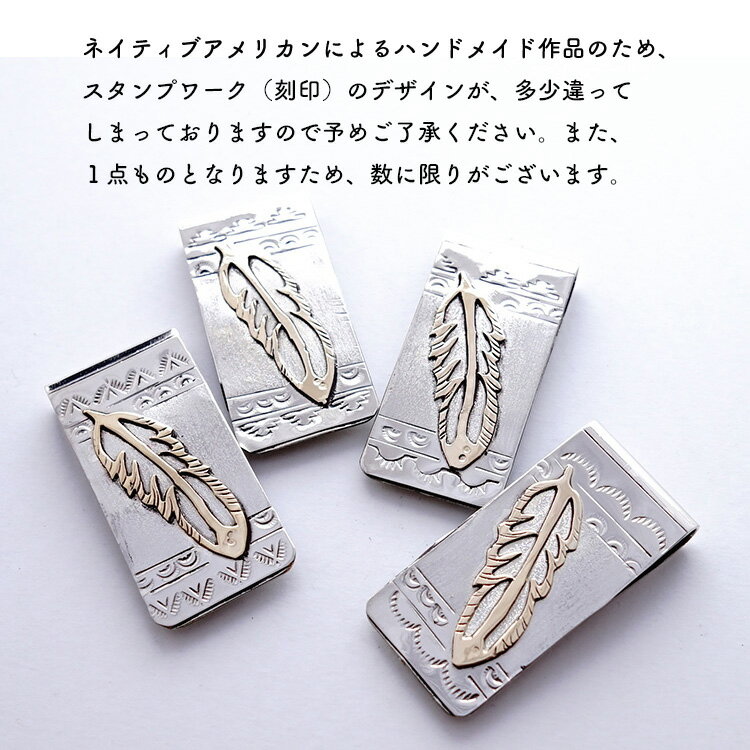 素材 インディアンジュエリー(ネイティブアメリカによるハンドメイドジュエリー) シルバー925 ◆ナバホ族 Genieve Jones 作シルバー925 フェザー マネークリップサイズ ◆マネークリップの大きさ:約52ミリx約25ミリ商品詳細〜ナバホ族 Genieve Jones 作 シルバー925 フェザーのマネークリップです〜 ●優しいエネルギーが伝わってくる、不思議な魅力を持ったインディアンジュエリー。